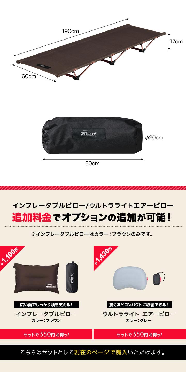 | 商品名 | DOD ウルトラクールキャンピングベッド | YAMAZEN アルミコット KAC-200 | FIELDOOR アルミコンパクトコット |