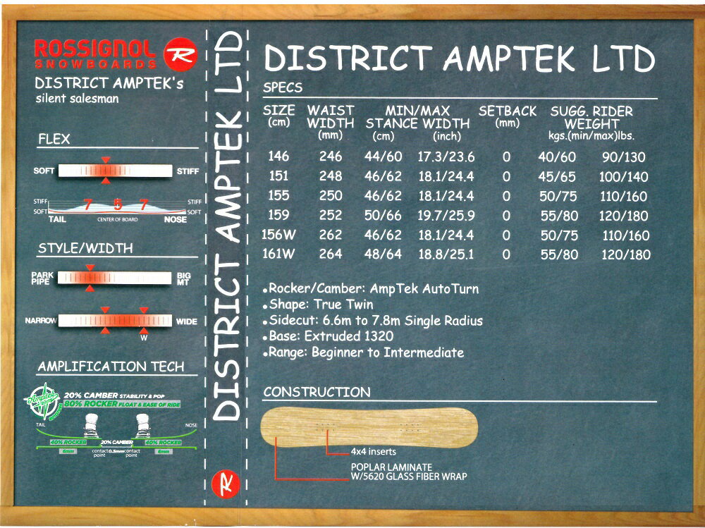 スノーボード板は、キャンバーシステムとオートターンロッカーによって、軽快なライディングができるロシニョールのDISTRICT(ディストリクト)で、初級者から中級者までのライダーがカービングの練習やトリッキーな動きの練習に使えます。