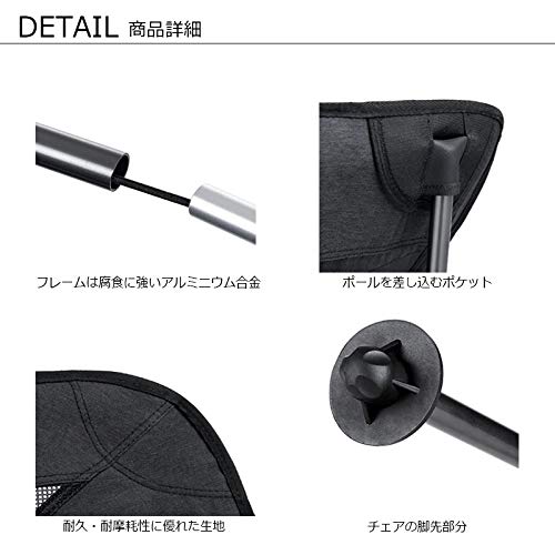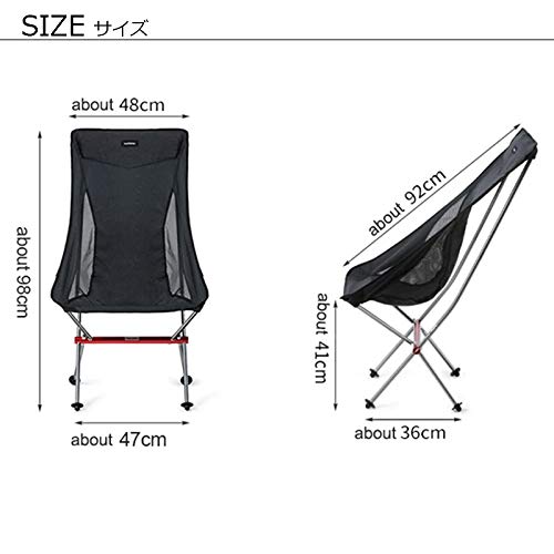 アウトドア用品の人気ブランド・ネイチャーハイクが販売するフォールディングムーンチェアは、無骨な印象が感じられるマットブラックのフレームを採用しました。デザインもスタイリッシュでおしゃれなアウトドアチェアです。組み立てした時の高さは約100cmほどになります。