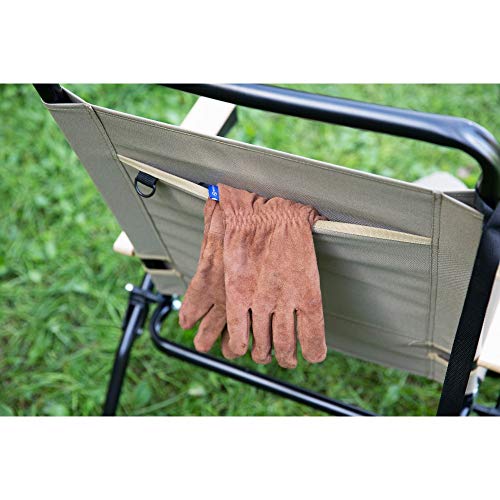 アウトドアで使用できるこちらのおしゃれなチェアは、背もたれの後ろ側に背面ポケットが付いていて、スマートフォンや鍵や小銭入れなどの小物を入れておくのに役立てられるでしょう。