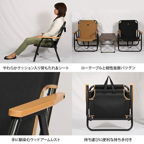 ロースタイルのキャンプで役立つこちらのおしゃれなチェアは、3段階まで背もたれ角度を変えられるリクライニング仕様で、自分のお好みの角度を探して座れることも魅力です。
