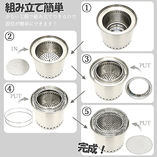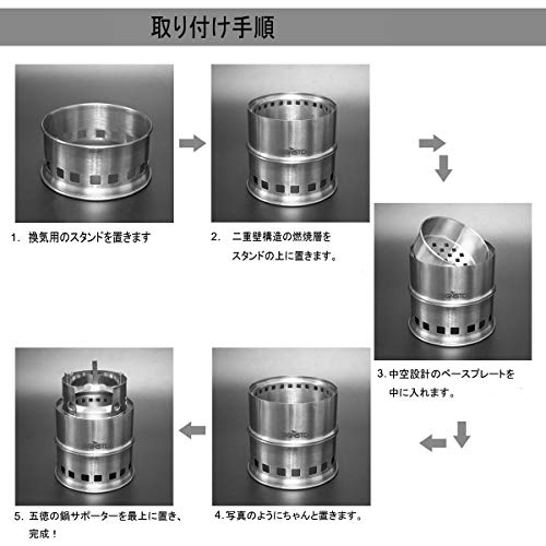 続いて灰受けプレートを中にはめ込み、最後に鍋受け五徳を一番上にセットすれば、使い始められます。他社メーカーの二次燃焼焚き火台と比較してお値段も安いです。