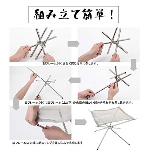 コスパがよく収納サイズが小さいことから初めてのバイクツーリング向きの焚き火台にもおすすめの製品です。コスパがよくてもフレームの耐久性が低いと扱いにくくなりますが、本品は強度も高く評価されています。初心者でも扱いやすいですが、メッシュのため風が強いときだけ注意しましょう。