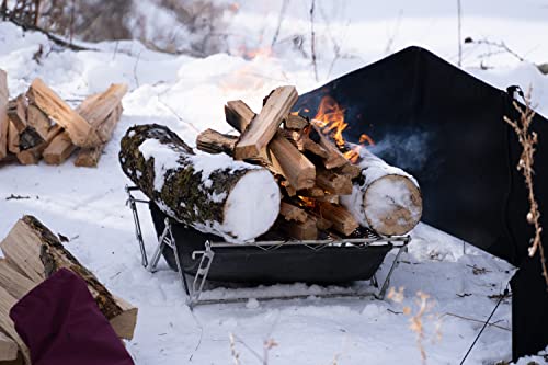「ワイヤフレーム」は携帯性と焚き火台としての機能性、どちらの性能も兼ね備えるバランスの良い焚き火台です。「ワイヤフレーム」は、火床に特殊耐熱クロスを使用しており、アームには熱が伝わらない設計なので、冷えるのを待つ手間なく速やかに撤収できます。