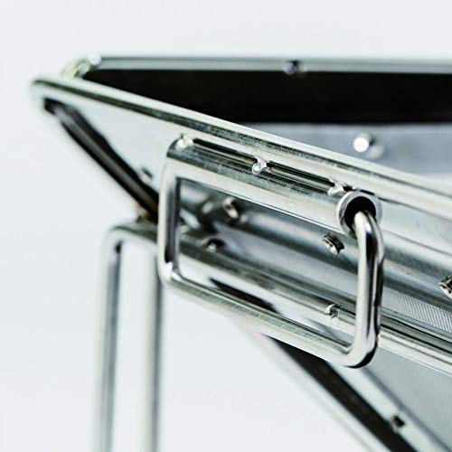 必要ない時は折りたたんで平たくでき、コンパクトに収納・携行できるという点も魅力です。錆に強くて耐久性にも優れたステンレス素材で作られました。別売りで保管用の収納ケースも販売されています。
