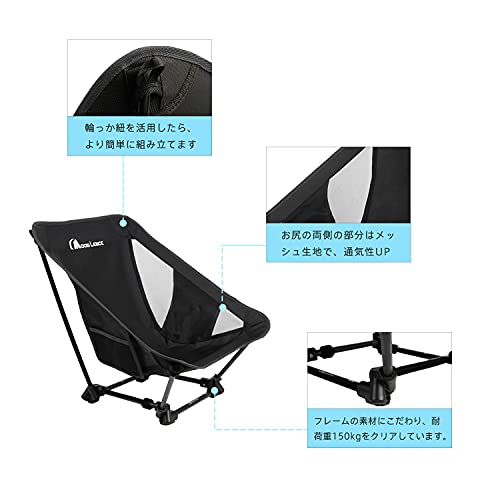 6位にランクインしたのは、Moon Lence「アウトドアチェア」です。組み立てやすくするために、背側に指かけヒモが付属。ヒモを引っ張りながら組み立てると力を入れなくても設営できます。