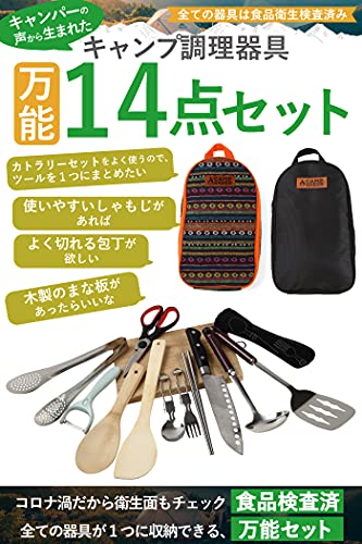 こちらの商品は、トングや包丁、ハサミ、フライ返しなど、便利な14点の調理器具が揃っているのが特徴です。サビに強いステンレス製なので、アウトドアでも気軽に活用できます。