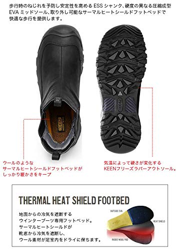 気温に応じて硬さが変化するキーンフリーズラバーアウトソールも採用されました。取り外しが可能で、ウールのようなサーマルヒートシールドフットベッドが暖かさキープのサポートをします。カラーはブラック×レイブン、ダークアース×マルチの2色より選べるブーツです。