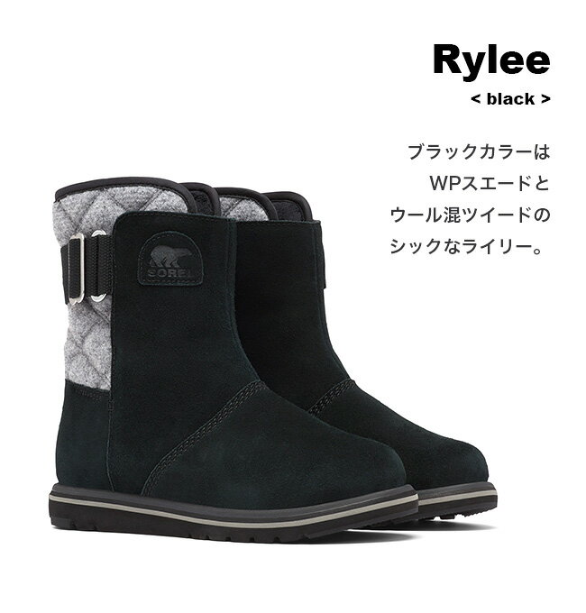 カナダブランド・ソレルのライリーは、冬キャンプで快適に履けるレディース用ブーツです。冬キャンプのファッションだけでなく、タウンユースのファッションでも活躍するデザイン性の高いブーツで、カラーはエルク、ブラック、メジャーの3色より選べます。