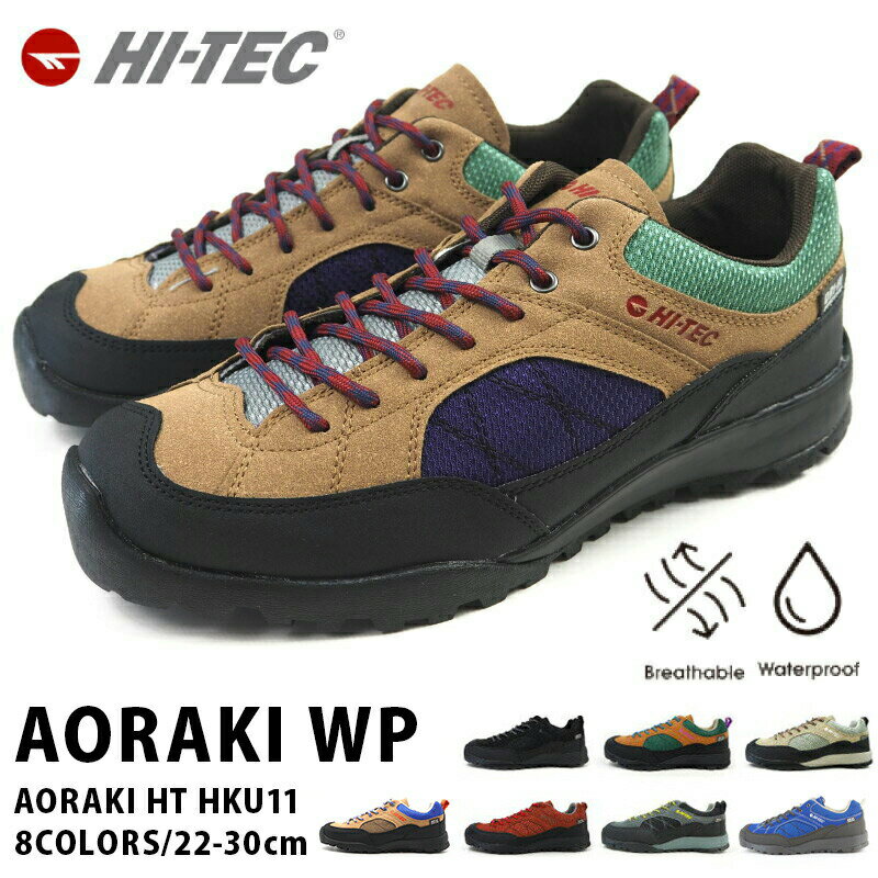 ヨーロッパのイギリスで誕生したアウトドアライフスタイルブランド・ハイテックが販売する「アオラギWP」は、キャンプ時のファッションでも重宝するおしゃれでお値段も安い靴です。ブラック・ブラウン×グリーン・ライトグレイ・キャメル・グレイ・ベージュ×ブルー×グリーンの6色より選べます。