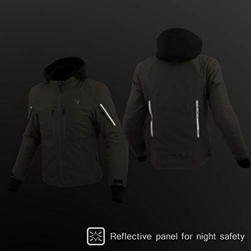スウェット生地のフードは必要なければ取り外すことも可能です。着脱できる保温ライナーが付属されているコミネ製ジャケットで、コミネより別売りされている電熱ライナーベストをオプションで装着することもできます。バイクにがっている時に乗車姿勢を取りやすい立体パターンを採用しました。