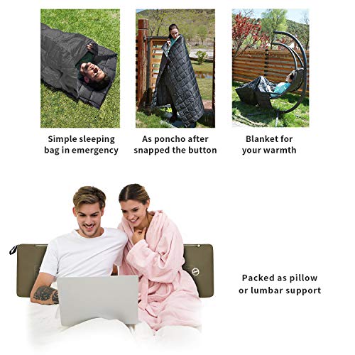 防寒マントやシュラフ、布団として幅広い用途に使えます。早朝や夜中など冷え込んだときに気軽に使え、1年中活躍してくれるため、便利なブランケット。