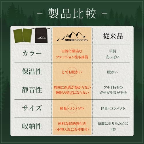 素材事態に高い通気性があるため、速乾性も魅力。真冬のキャンプに使用する場合、風を通さないアルミシートと併用すると、保温性を高めることが可能です。