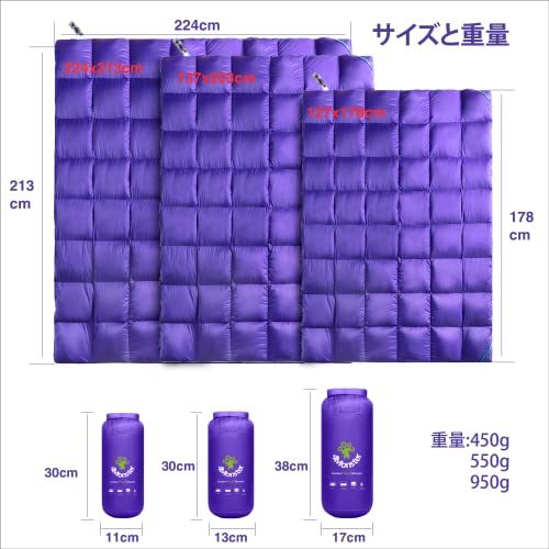 こちらのダウンブランケットは、3サイズのバリエーションがあるため、体の大きさや使用目的に合わせて選びやすいのがポイント。また、ブランケットを汚れや水濡れから保護できる収納ケースもキャンプにうれしいですね。