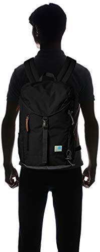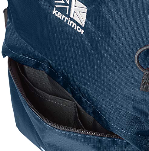 会社に行く時に背負えるこちらのリュックは、上部にハンドルが付いているため、ビジネスシーンで片手携行することもできます。強度に優れたコーデュラファブリックを素材に採用しているバッグです。正面にはカリマーのブランドロゴがプリントされています。