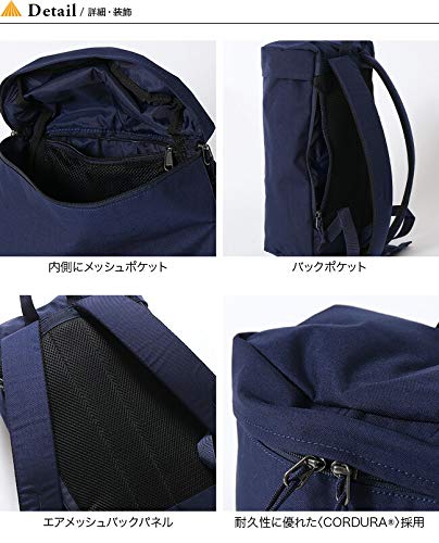 内側にメッシュポケットが付いていて、すぐに使いたい小物を入れておくのに便利です。背面側にはバックポケットが付いています。通気性の高いエアーメッシュバックパネルを採用しているので、ビジネススーツ着用時の通勤中も背中が蒸れにくいです。カラーは定番のブラックだけでなく、ダークネイビー・ミリタリーからも選べます。