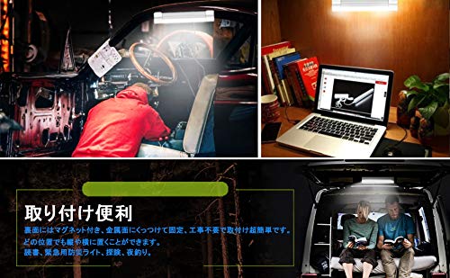 本体には、2本のストラップと強力マグネットが付いています。車内ではストラップでシートに取り付け、照明として使用することが可能です。また、車外で作業をしたい場合はマグネットが役立ちます。車の本体を傷つけることなく照明を設置できるため、気軽に活用できるのが嬉しいポイントです。