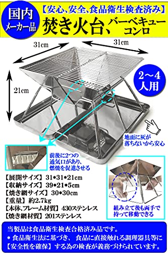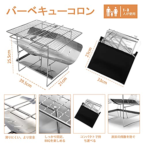 灰を受けるためのトレイや炭置き、スタンド、風防、焼き網といったソロキャンプで役立つアイテムが全て揃った便利な商品です。他の商品と比較しても充実した付属品を備えているので、ソロキャンプの快適性を上げたい時に適しています。