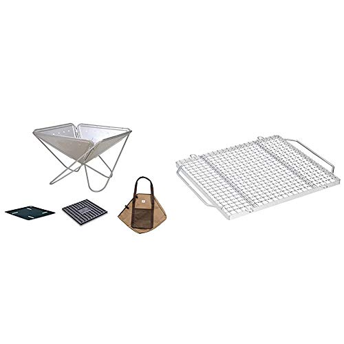 焼き網を取り付けても焚き火台の半分は空いている状態になり、簡単に薪をくべることが可能です。焼き網にもおしゃれなデザインが施されているので、全体のデザイン性を崩さずに活用できます。ダッチオーブンのように重たい鍋を乗せても安定感をキープでき、キャンプ料理の幅を広げたい時にも最適です。