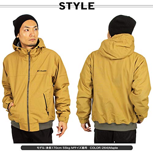 コロンビアのロゴが胸元についたデザインのベージュのマウンテンパーカーです。ワンカラーとはいえ、アイテムの下のリブ部分にはグレーも取り入れられているのでおしゃれに着ていただけるでしょう。サイズも6種類とあるので、着丈や身幅に合わせて購入してください。ぴったりめで選ぶ方も多いですがゆったり目で着るのもとてもおしゃれです。