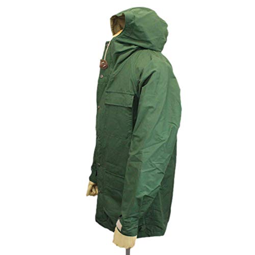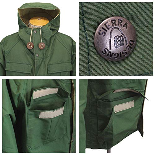 生地はシエラデザイン定番の60/40クロスで、撥水、透湿性は十分。ファスナーが隠れるフライフロント構造なので内部に雨が染みることもありません。また、フードや襟はデザイン性も兼ねて大きめに作られているので、もしもの雨のときも安心です。