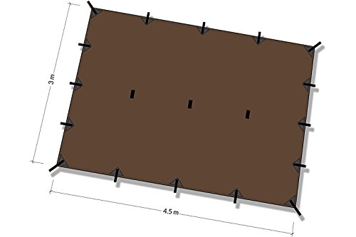 本品はDDタープの定番のサイズの3×3mをベースに防水性をたかめたり、ループを新たに追加した特殊なモデルです。防水加工やループの数が変わったことでわずかに重量が上昇している点は注意しましょう。重たくなりましたが、それでもわずか875gしかなく他社のタープと比べると軽量と感じる方が多いでしょう。