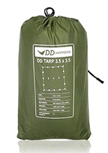 DDタープの大きなモデルとなり5×5の正方形です。非常に大きなモデルですが重量は1900gしかなく、他社のタープと比べると非常に軽量な作りになっています。ループの数が3×3mモデルよりも多く、より多彩なアレンジができるため上級者におすすめです。