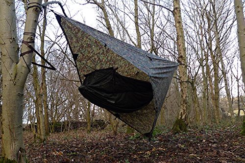 DDタープはハンモックの上に広げて屋根のように使うタープです。通常のタープと比べるとループの数が非常に多く、さまざまな形状に張れるようになっているため、アレンジしやすいタープになります。