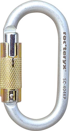 始めにご紹介するのが、オーバル型のカラビナです。3段階手動オープンで、強度が25kNとなっています。シルバーの本体にゴールドのネジが美しいカラビナです。ロックテリクスのカラビナはゲートが正常に機能するのかを一つ一つチェックしているので、その点でも安心して使っていただけます。