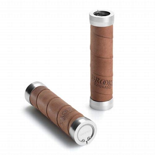 イングランドの老舗メーカー・BROOKSが販売する「スレンダーレザーグリップ」は、クロスバイクをかっこいい見た目にカスタマイズできるおしゃれな自転車用ハンドルグリップです。握る部分にはさりげなくメーカーのロゴマークが入っています。
