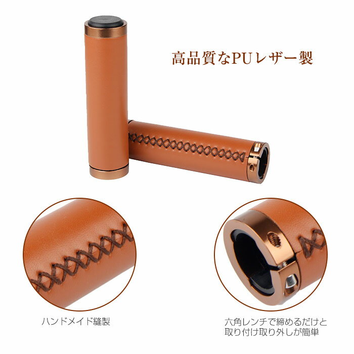 自転車におすすめなこちらのハンドルグリップは、高品質なPUレザーを素材にして作られたストレートタイプのかっこいい人気商品です。ハンドメイド縫製で、しっかりとした作りで、カラーはブラックとブラウンの2種類より選ぶことができます。