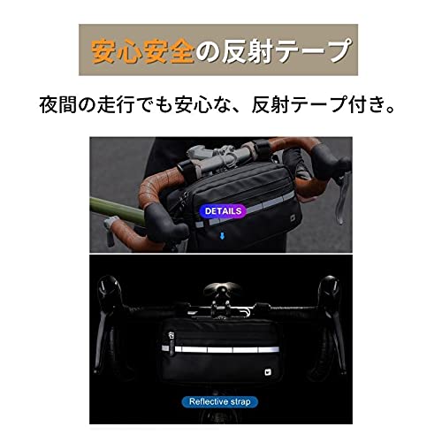 前側ポケットは光に反射するテープで縁取りしていて、視認性を考慮したデザインを採用しています。防水性も備わっている自転車用フロントバッグなので、自転車走行中に雨が降ってきても荷物を濡らしてしまう心配もありません。