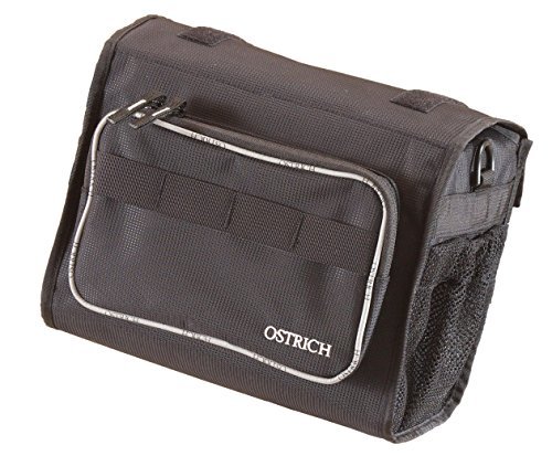 直接ハンドルを装着することも可能ですが、別売されているフックキャリアKとセットで使うのをおすすめとする製品です。正面にはオーストリッチのブランドロゴが付いたワッペンが刺繍されています。カラーはブラック・グレー・ネイビーブルーの3色から選べるおしゃれなフロントバッグです。