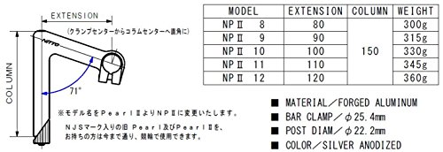 NITTOの自転車用ステムNPⅡはクランプセンターからコラムセンターへ直角に折れ曲がるタイプなので、日常のサイクリング用にも、レーススタイルにも調節可能です。