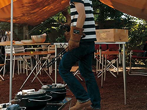 厚みがあるレザー製焚き火グローブなので、焚き火にかけて調理したダッチオーブンを移動させる時に使うのもおすすめです。手首までをしっかりと保護することができ、柔らか仕上げで、女性も握りやすいと感じられるでしょう。