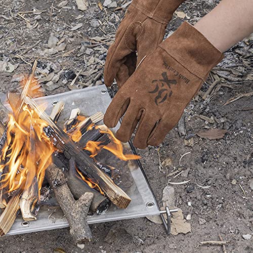 また焚き火の直火で調理したスキレットやダッチオーブンをテーブルまで移動する時などにもおすすめの手袋です。焚き火で薪をいじるために使うトングが熱くなってもそのまま持つこともできます。キャンプだけでなく、溶接などの作業を行う時などに使用するのもよいでしょう。