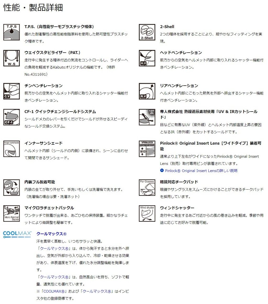 またインナーは着脱できるので、保守が楽なのも人気点になります。シールドは透明タイプが標準ですが、アンバーやミラーなどのオプションにすればより個性的です。
