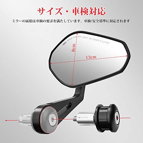 強度の高い6061アルミ合金を使用し、しっかりとした耐久性を備えた商品です。錆びにくいステンレス製のネジなど、細かな部分にもこだわっているのが魅力。バーエンドに取り付けることで視野が広がり、安全な走行を楽しめるのも嬉しいポイントです。車検対応なので、心配することなく取り付けられます。
