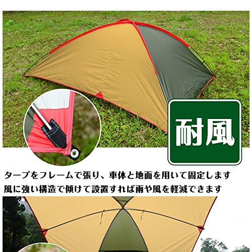 ミニバンに取り付けが可能なテントタイプの商品です。やはりテント型だとプライベートも守られるので、安心したいという方におすすめとなっています。屋根部分は大きく広げてさらに広く使うことも可能です。耐水圧の面では他の商品よりも小さい数値ですので、その点は理解の上ご購入してください。