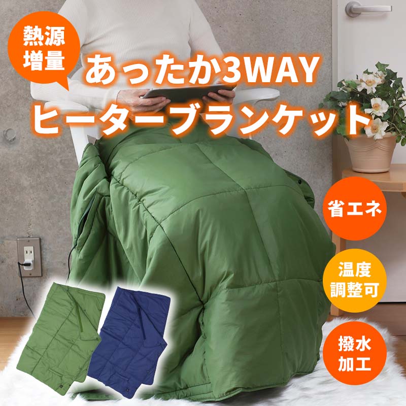 さまざまな機能が搭載された「3WAYヒーターブランケット」は、シーンに合わせた使い方ができます。ブランケットや電気毛布としてだけでなく、スカート・ポンチョ・ベストと、3パターンの使い方ができるのでおすすめです。
