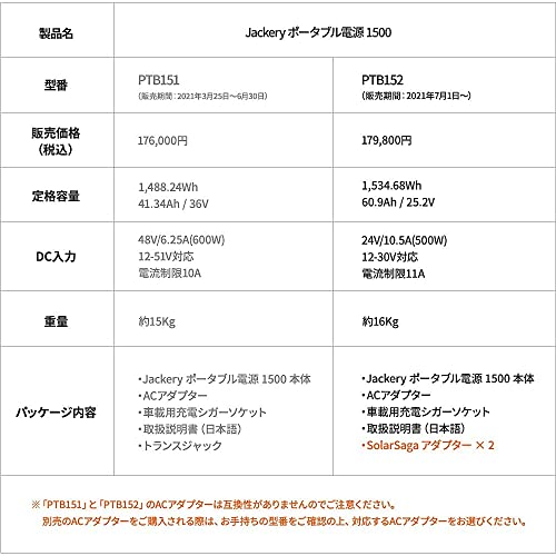 Jackeryのキャンプ用ポータブル電源はワット数ごとに商品が分かれており、今回紹介するのは最大出力の電源です。バッテリー容量は42万mAhと超大容量となっており、定格出力は1800Wという特大ワット数を誇ります。