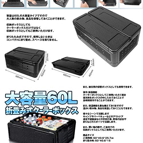 | サイズ | 外寸 : 600×400×250mm、折りたたみ時高さ100mm、内寸 : 550×350×200mm、断熱材厚み2.5cm |