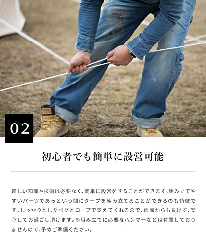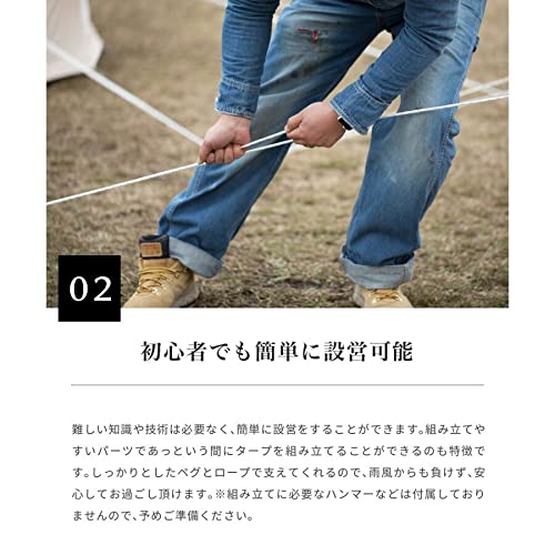 また、オックスフォード生地ですので、濡れても乾燥しやすいのが特徴。無くてもキャンプはできますが、より快適に過ごされたい方はグランドシートを敷いて、汚れや湿気などを気にしない環境を作られることをおすすめします。