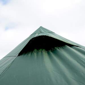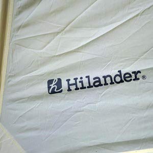 本品はハイランダーのワンポールテントでは珍しいポリエステル、コットンを使用したTCモデルです。化繊とコットンを混紡することで通気性や遮光性が高くなり、結露に強く濃い陰ができます。また、化繊よりも熱に強く焚き火で発生する火の粉で穴が空きにくい素材です。