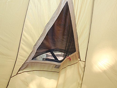 ピルツ12は画像のように、入り口にひさしが付いています。ティピーテントは雨の日に入り口から雨が入ってきてしまうのが弱点ですが、ひさしがあれば中に雨が入ってきませんので、快適に過ごせます。