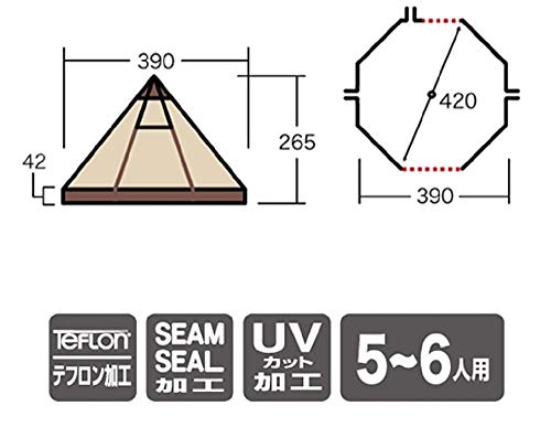 形は八角錐になっていますので、とがったフォルムになるのがとてもおしゃれ。すぐ設営できて、おしゃれで、かつファミリーで使えるサイズなのは嬉しいですよね。