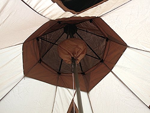 また、テントの上部を開けて、ストーブの煙突を出す使い方もできます。ただし、一酸化炭素チェッカーは必ず使って、通気・換気には十分気を付けて下さい。