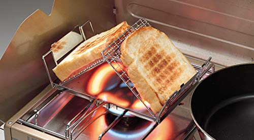 焚き火だと焦がしてしまいがちなパンですが、本製品なら火加減などの微調整をし、焼き色を確認しながらトーストできるので、自分好みの焼き加減に仕上げられるでしょう。もちろん食パン以外のパン、スライスしたフランスパンなども山型で大丈夫です。
