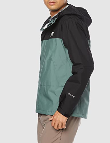 両胸部分にはファスナー付きポケットが付いていて小物収納に便利です。裾部分にアジャスタードローコードがあることで冷気や風の浸入を軽減でき、風によるバタつきも抑えられます。防水性を高めるシームシーリング加工が内側に施されています。ブラックとカーキの2色から選べるおすすめのレインウェアです。