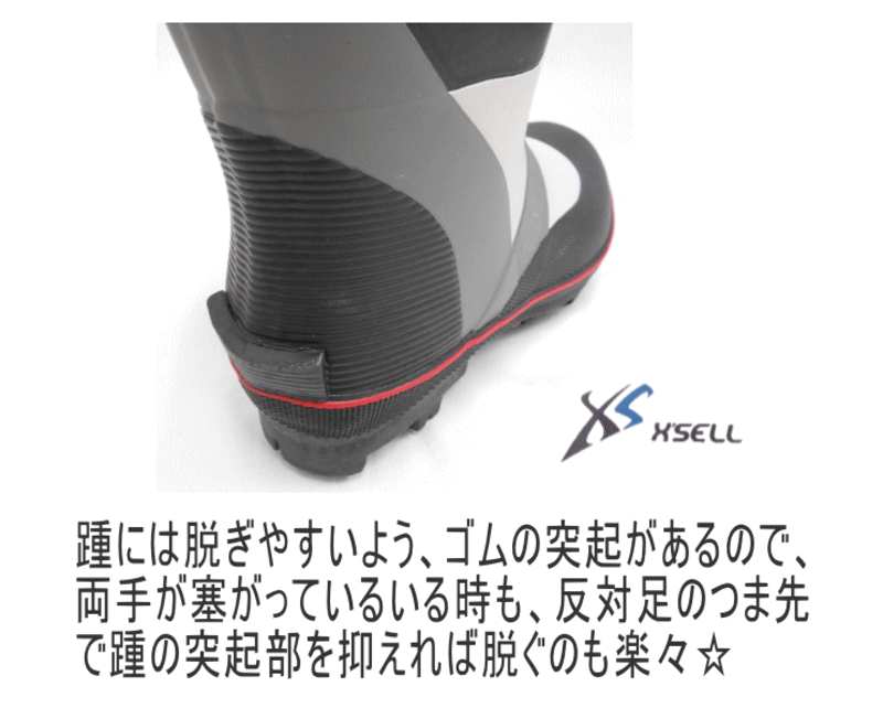 「エクセル スパイクブーツ LF-217」は、かかとの部分に突起がついています。片方の足を引っ掛けて脱ぎやすくなる仕様のため、スムーズな着脱が可能です。フィット感の強い靴やブーツタイプだと、脱ぐのに時間がかかってしまいます。簡単に着脱できるようになっているシューズであれば、釣りを終えた後にすぐ出かけたい時にも最適です。